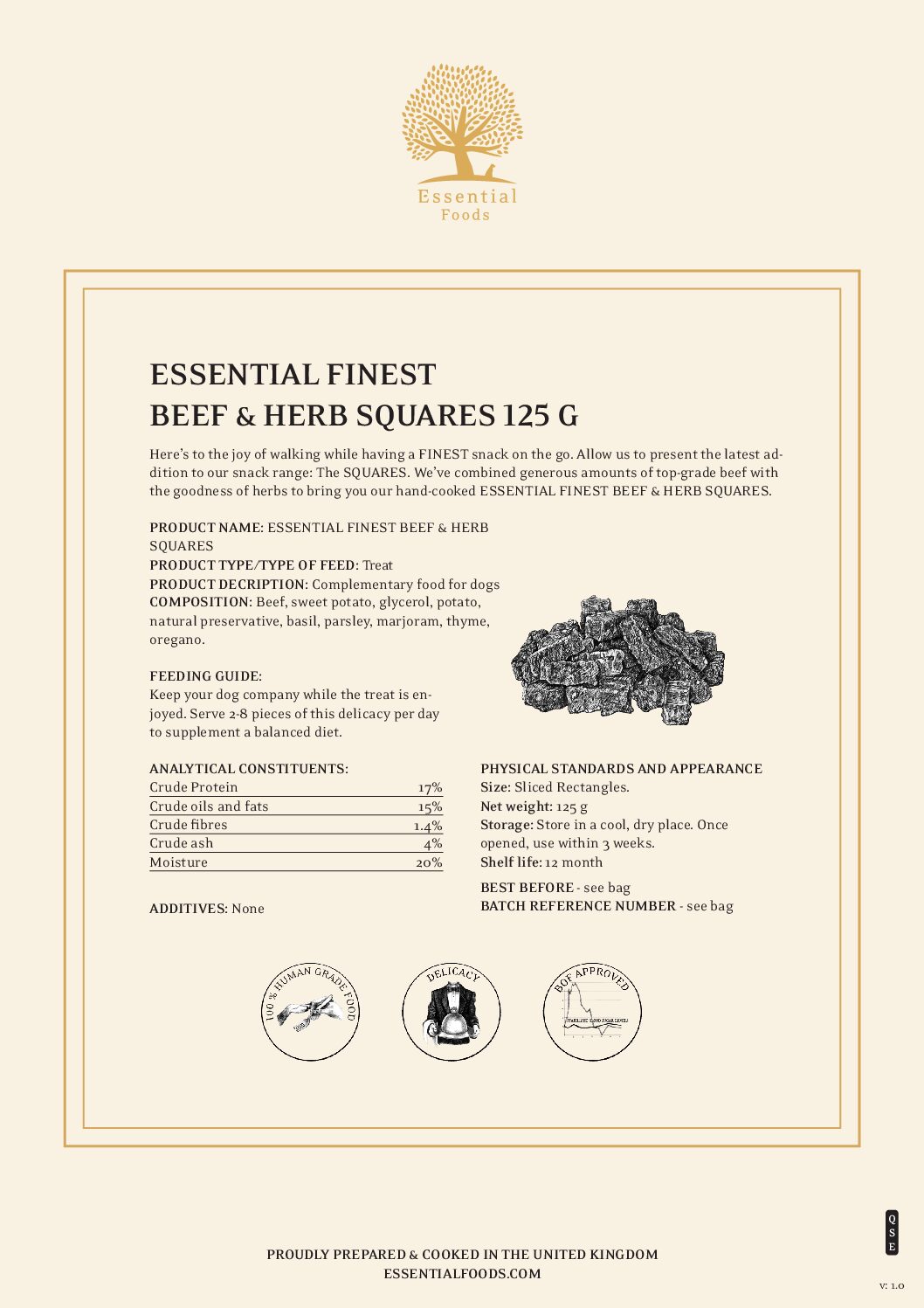 We hebben royale hoeveelheden hoogwaardig rundvlees gecombineerd met de goedheid van kruiden om u onze handgemaakt ESSENTIAL FINEST BEEF & HERB SQUARES te bieden.